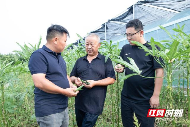 “秋葵的采摘标准最好是8-10厘米,这样的口感最好。在采摘的时候要同时修剪下面的老叶,这样才能保证上面果子的营养供给。”在蒸湘区亿湘农生态农业发展有限公司的蔬菜基地,科技特派员闵冬青手把手教农户定植技术。