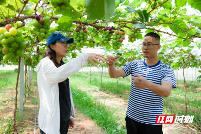 眼下,正是葡萄成熟的季节。在蒸湘区雨母山镇新竹村华农葡萄农民专业合作社,陈俐正在基地细致察看今年的葡萄长势,她一边用手轻轻托起葡萄串,一边耐心讲解:“采摘前10天要减少灌溉,让土壤含水量保持在60%左右,这样葡萄甜度能提高2-3个糖度。”作为葡萄基地的“技术管家”,她坚持从品种筛选、精准施肥、病虫害绿色防控、科学修剪到采摘全过程指导。
